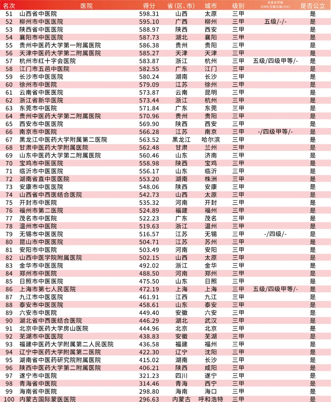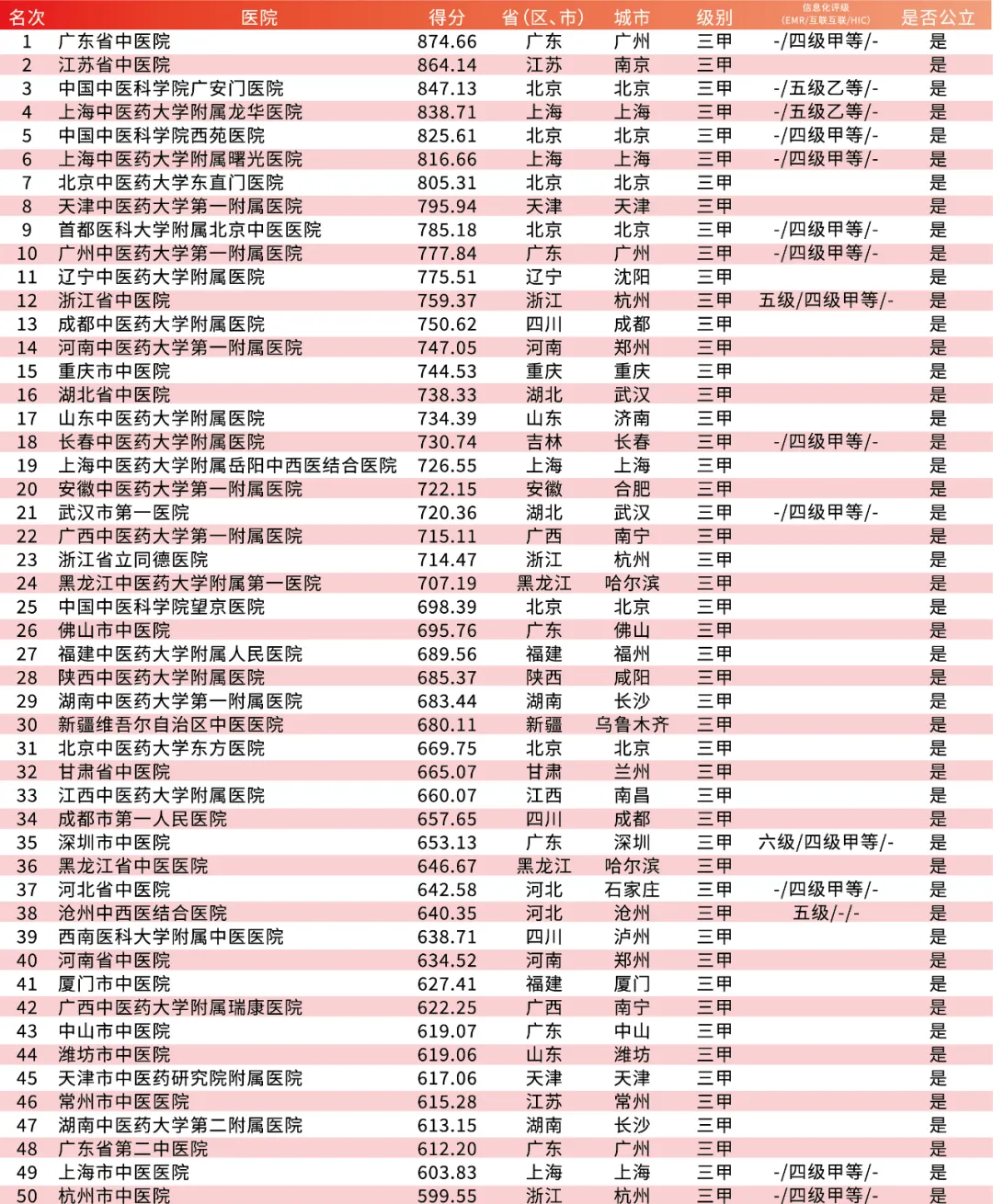 榜單前三強(qiáng)為:廣東省中醫(yī)院、江蘇省中醫(yī)院、中國中醫(yī)科學(xué)院廣安門醫(yī)院。