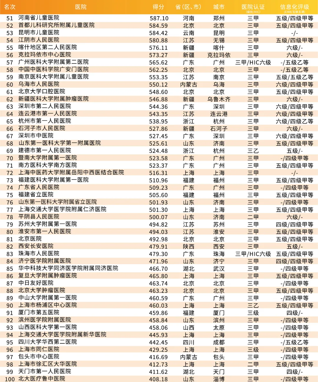 榜單前三強(qiáng)為:廣州市婦女兒童醫(yī)療中心,中國醫(yī)科大學(xué)附屬盛京醫(yī)院,上海交通大學(xué)醫(yī)學(xué)院附屬瑞金醫(yī)院。
