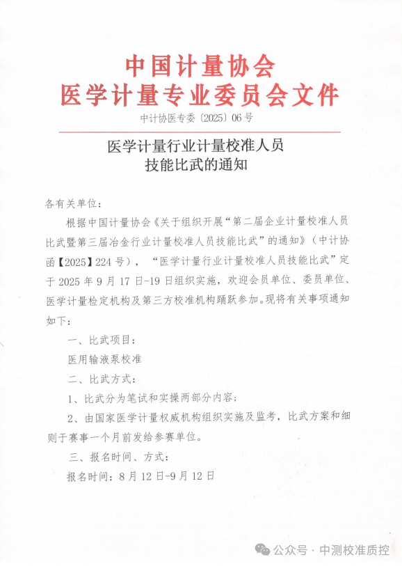 3. 醫(yī)學計量行業(yè)計量校準人員技能比武的通知