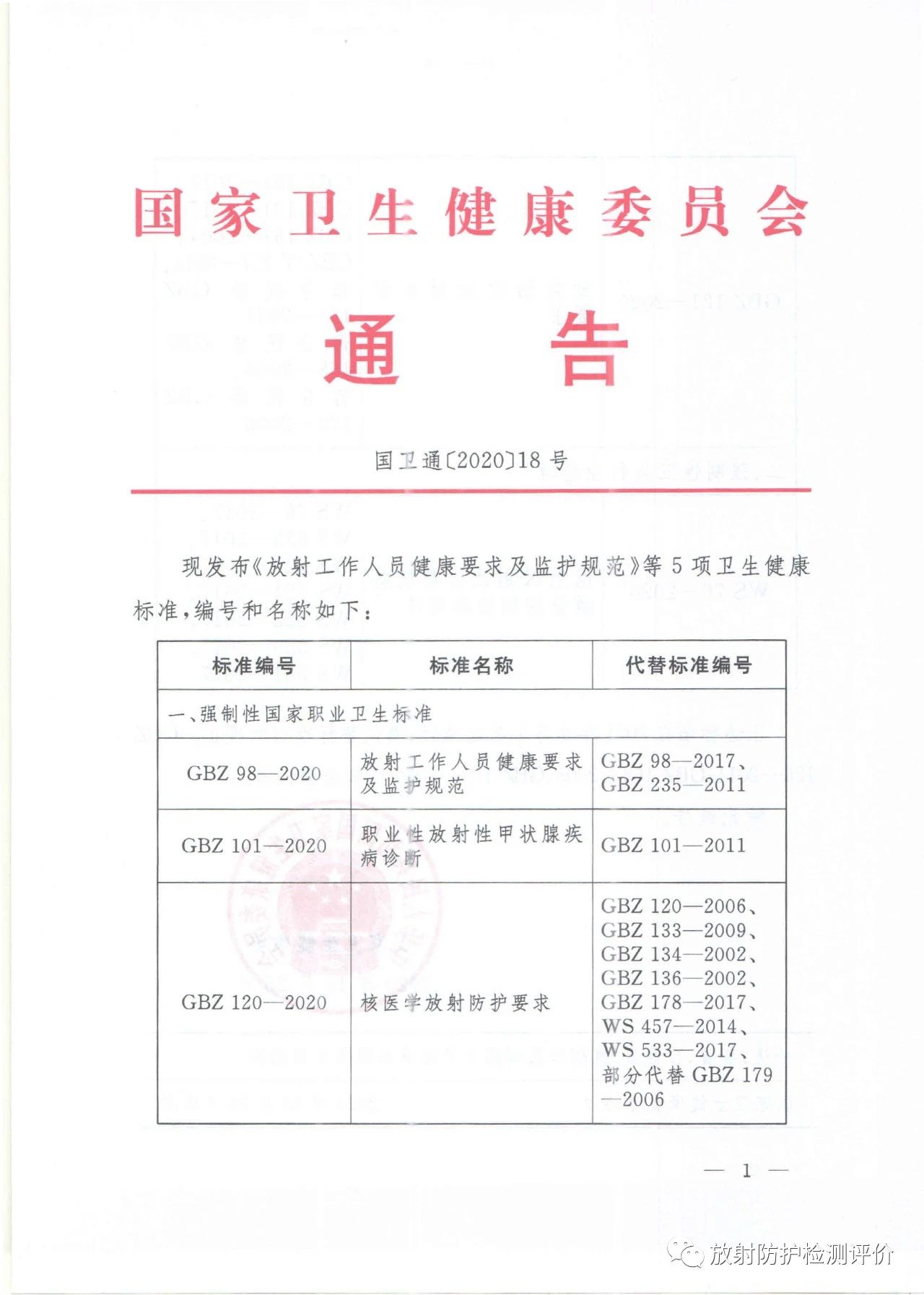 | GBZ98-2020 | 放射工作人員健康要求及監(jiān)護(hù)規(guī)范 | GBZ98-2017、 GBZ235-2011 |