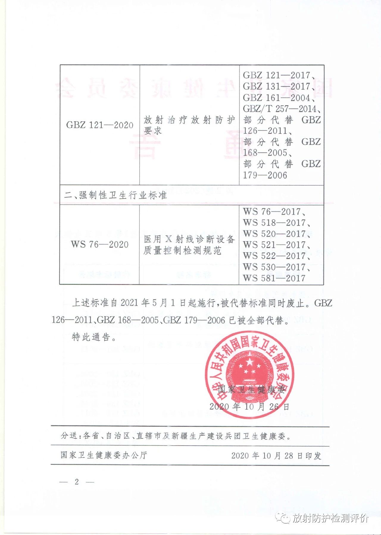 | GBZ121-2020 | 放射治療放射防護(hù)要求 | GBZ121-2017、 GBZ131-2017、 GBZ161-2004、 GBZ/T257-2014、 部分代替GBZ126-2011、 部分代替GBZ168-2005、 部分代替GBZ179-2006 |