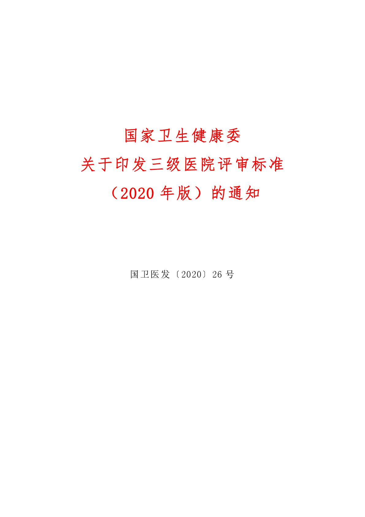 國(guó)家衛(wèi)生健康委關(guān)于印發(fā)三級(jí)醫(yī)院評(píng)審標(biāo)準(zhǔn)(2020年版)的通知