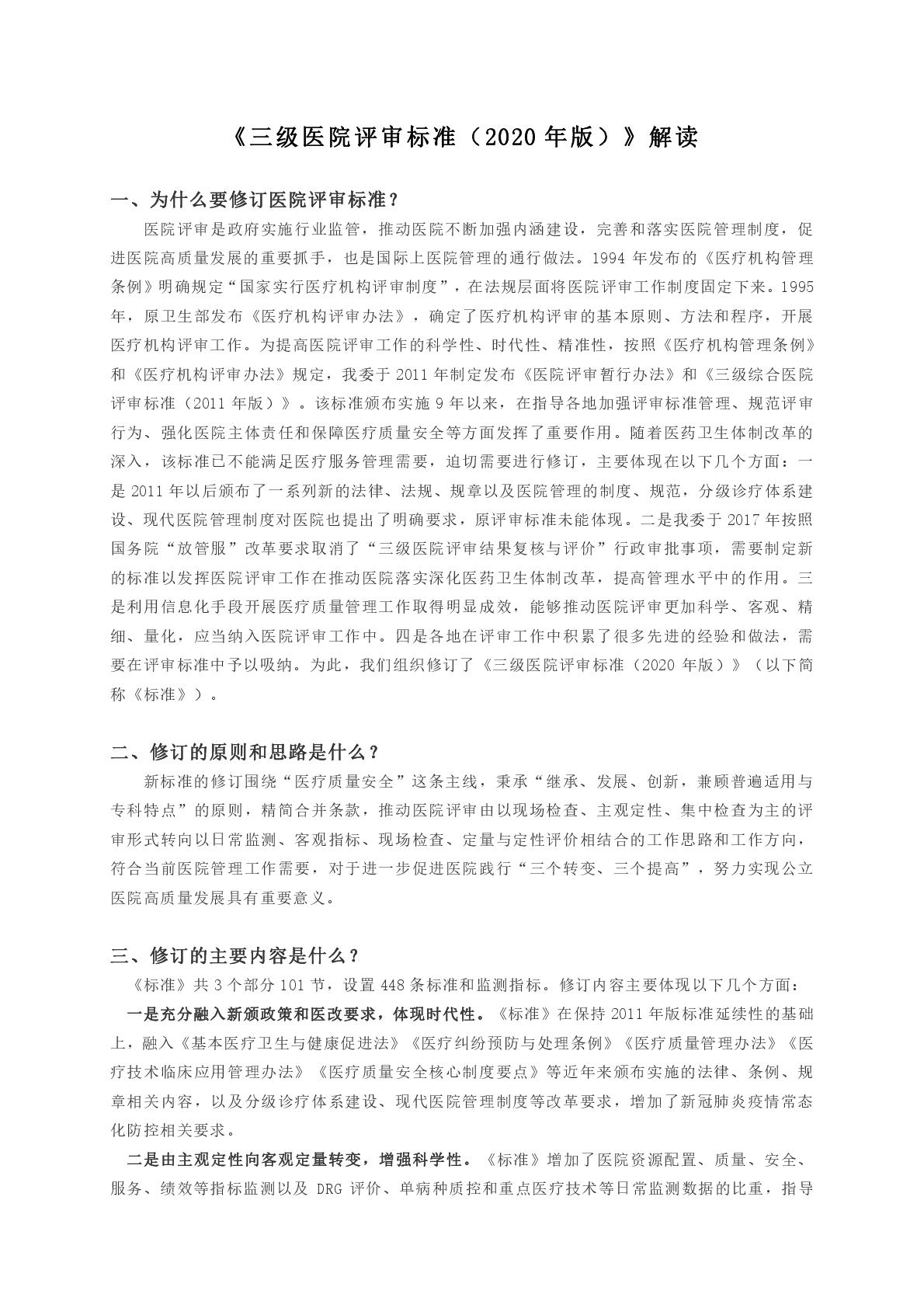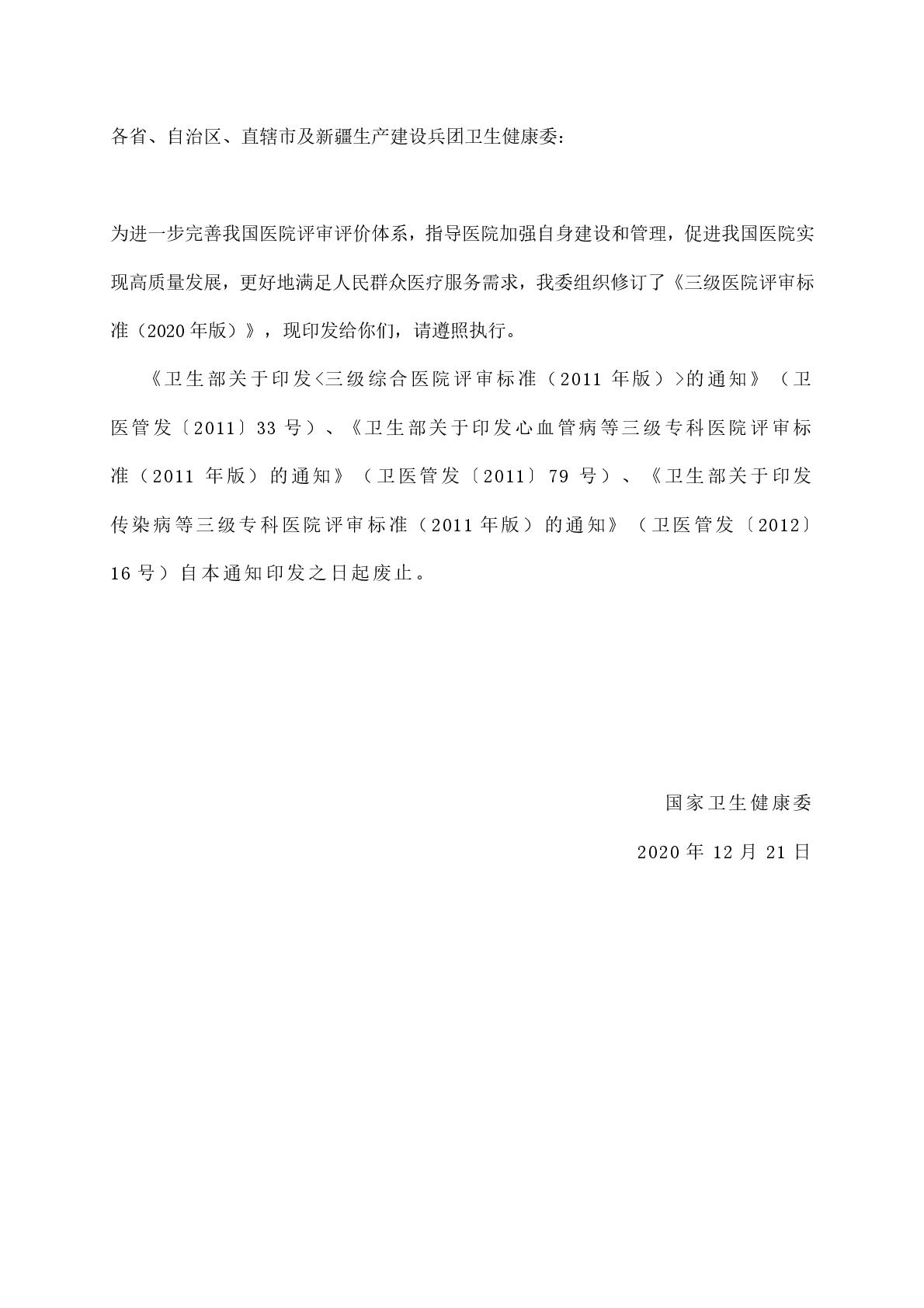 3. 國(guó)家衛(wèi)生健康委關(guān)于印發(fā)三級(jí)醫(yī)院評(píng)審標(biāo)準(zhǔn)(2020年版)的通知