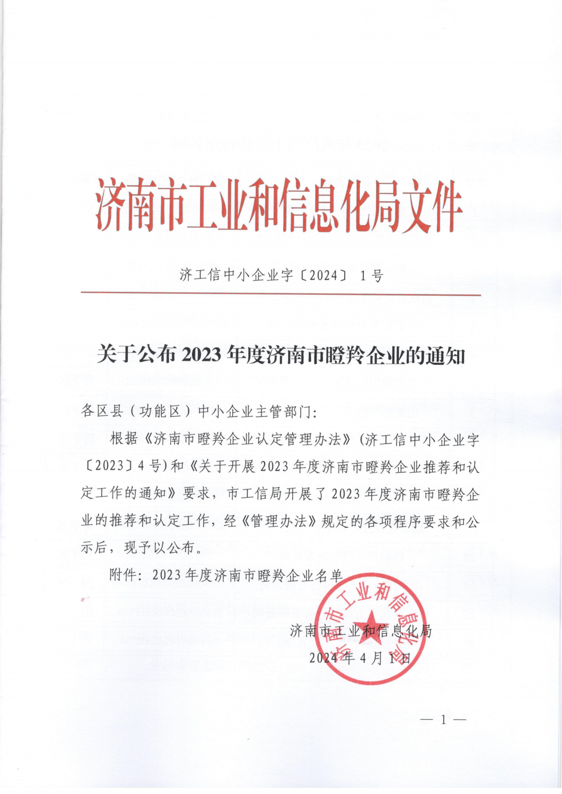 《關(guān)于公布2023年度濟南市瞪羚企業(yè)的通知》