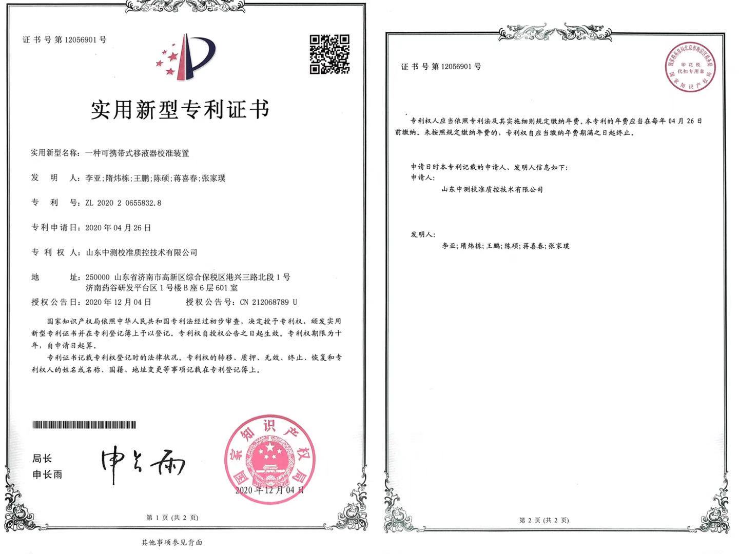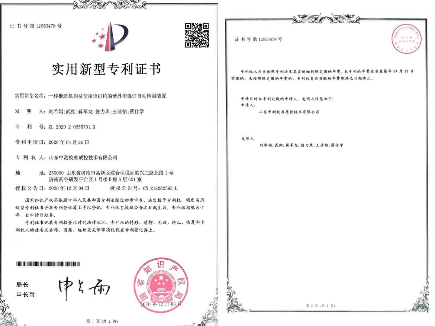 中測校準(zhǔn)2020年又順利通過取得三項(xiàng)實(shí)用新型專利證書:一種安全柜風(fēng)速檢測定位裝置、一種可攜帶式移液器校準(zhǔn)裝置、一種推送機(jī)構(gòu)及使用該機(jī)構(gòu)的紫外消毒燈自動檢測裝置。中測校準(zhǔn)秉持“做醫(yī)學(xué)計(jì)量與質(zhì)控檢測行業(yè)引領(lǐng)者、做醫(yī)療質(zhì)量與醫(yī)療安全的守護(hù)者”的使命和愿景,積極為全國企事業(yè)單提供優(yōu)質(zhì)的計(jì)量校準(zhǔn)質(zhì)控檢測服務(wù),致力成為國內(nèi)一流的醫(yī)療設(shè)備檢測、評價(jià)、校準(zhǔn)、質(zhì)控、維保的綜合服務(wù)機(jī)構(gòu)。未來我司還將繼續(xù)加大科研投入,在檢測裝備研發(fā)、檢測規(guī)范及標(biāo)準(zhǔn)起草等方面的取得更多成果。