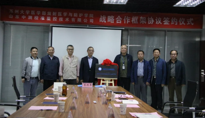 2018年10月13日,山東中測校準(zhǔn)質(zhì)控技術(shù)有限公司與蘇州大學(xué)醫(yī)學(xué)部放射醫(yī)學(xué)與防護(hù)學(xué)院在中測校準(zhǔn)會議室簽署了戰(zhàn)略合作框架協(xié)議。來自蘇州大學(xué)醫(yī)學(xué)部放射醫(yī)學(xué)與防護(hù)學(xué)院的曹建平書記、涂彧教授、萬駿副教授、王敬東主任,中測校準(zhǔn)CEO任宏偉、業(yè)務(wù)總監(jiān)張偉、市場總監(jiān)江玉柱、財(cái)務(wù)總監(jiān)張儉等全體員工出席本次簽約儀式,簽約儀式由江玉柱總監(jiān)主持。