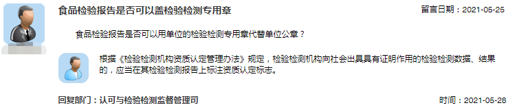 2.食品檢驗(yàn)報(bào)告是否可以蓋檢驗(yàn)檢測專用章