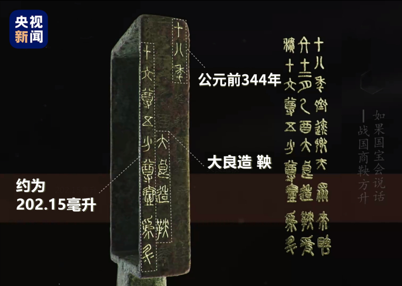 戰(zhàn)國時期,商鞅變法,首先確定度量衡標準,制作統一的度量衡器具。商鞅方升是目前所見最早的采用“以度審容”的科學方法而制作的容量器具。一個只有巴掌大小的銅方盒,它以小小的身軀,完成“度量天下”的使命。秦統一六國后,商鞅方升見證了中國計量單位走向統一的“決定性瞬間”。秦始皇頒布了統一度量衡詔書?,F存于甘肅省鎮(zhèn)原縣博物館的秦代“銅詔版”也是當時歷史的見證。